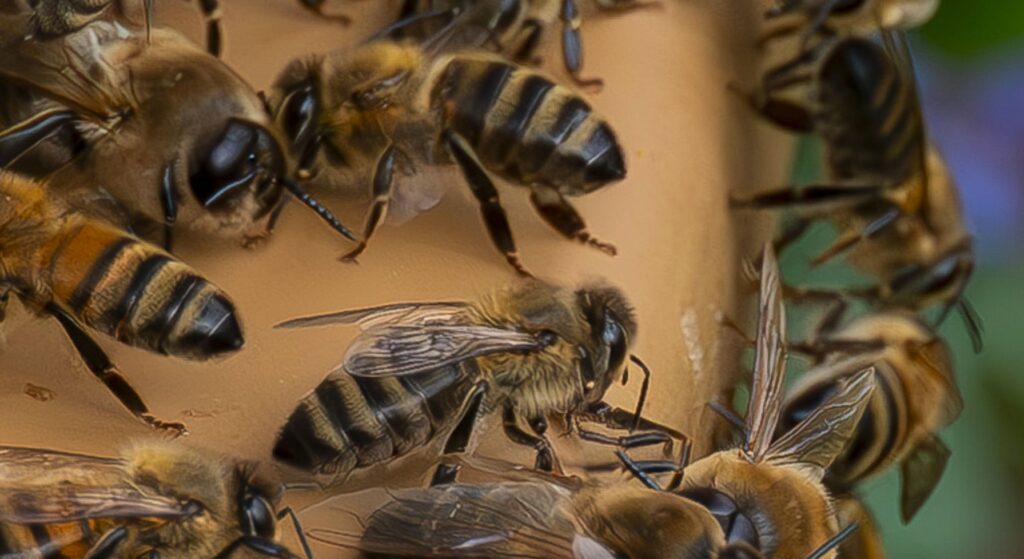 Hieronder enkele foto’s van onze bijen gemaakt door (macro) fotograaf Mieke Noordanus.